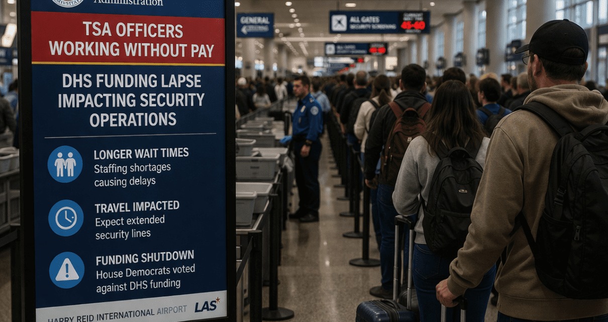 TSA agents are working without pay. Staffing strain is building. Wait times are stretching. Travelers are stuck in lines that feel endless as airports absorb the shock of Washington’s dysfunction. This is where the debate ends and reality begins.
